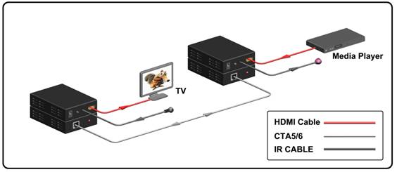 Este extensor HDMI também tem a capacidade de re-transmitir o sinal IR do controle remoto, assim você pode continuar usando o controle remoto original, para controlar o equipamento reprodutor de vídeo que está a até 100 metros de distância da tela, através deste incrível extensor HDMI.