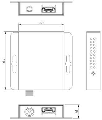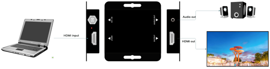 Este é um extrator de áudio (de-embedding) com a função de ajustador 4K@60Hz compatível com HDCP 2.3 e gerenciamento de EDID. Suporta alimentação através da saída de 5V proveniente da fonte de sinal HDMI, permitindo a transmissão sem perdas de sinais RGB em 4K@60Hz e possibilitando o ajuste da frequência do sinal por meio de chaves DIP físicas. O dispositivo integra função de ajuste de HDCP 2.3/1.4, solucionando problemas de compatibilidade com sinais criptografados, além de disponibilizar simultaneamente uma saída de áudio analógica de 3,5 mm para separação de áudio.