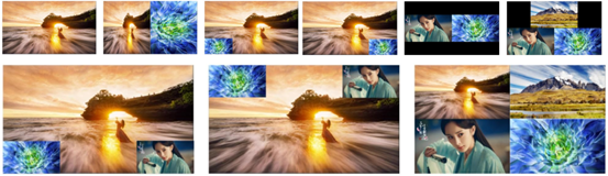 - Suporta sinal de comutação do painel em tela cheia, 4 imagens, 2 imagens, etc .;